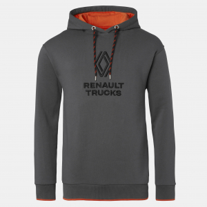 Sweat à capuche en molleton de coton avec un logo massif Renault Trucks brodé sur le devant. Couleur rouge dans la capuche et sur le bord de l'ourlet et des poignets côtelés. Étiquette textile Renault Trucks dans la couture latérale gauche. Fabrication 100% coton biologique certifiée GOTS avec un intérieur en polaire brossée pour un confort accru.